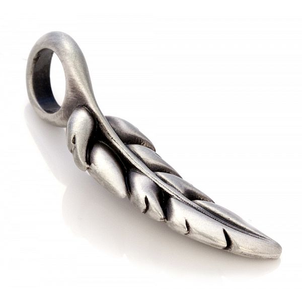 Osa Bicon ajatonta kuvaketta. Nimi: Kevyt sulka Merkitys: hyve ja totuus, yhteys taivaalliseen valtakuntaan, vapaus elämässä Alkuperäinen Bico -suunniteltu riipus ainutlaatuisella hapettuneella mattahopealla. . Riipuksen leveys: 0,9 cm Pituus: 2,6 cm